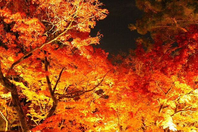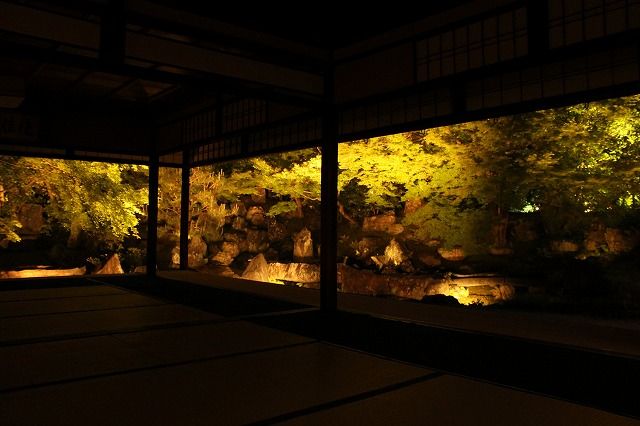 高台寺とセットで巡るとお得な拝観チケットがあります。筆者はこの圓徳院がお気に入りスポットで、昼間に庭を見ながらのんびりしたり、禅体験をしたりするものよし、夜になれば写真のような夜景を楽しむことができます。意外と夜間は穴場スポットなのか、人がごった返していたことはありません。雨が降ってもまた風情があって良いです。